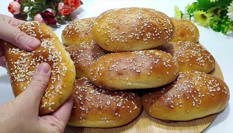 نحضر قطع العجين ونفردها على شكل دائرة سميكة الحجم، ثم نضع ملعقة صغيرة من الحشو في منتصف قطع العجين ونغلقها جيداً من الأطراف.