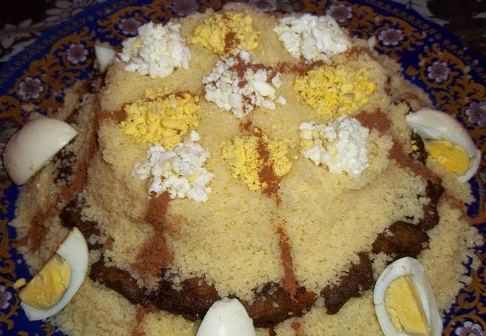 سفة الكسكس مدفونة باللحم شهية بالصور
