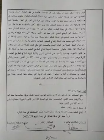 وجاء في نص قرار المحكمة الذي تم تداول صورة له على مواقع التواصل الاجتماعي أن الهيئة قررت بالإجماع منع المحاكمة عن المدعي عليه فادي مخايل هاشم بما أسند إليه .