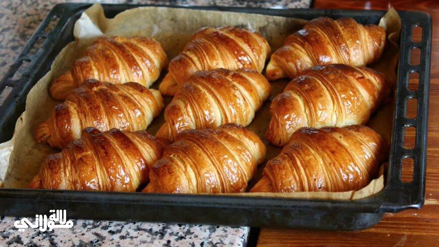 المقادير 600 غ دقيق ابيض 60 غ سكر 60 غ زيت نباتي 230 حتى 250 غ خليط حليب وماء بارد 16 غ خميرة جافة بيضة كبيرة ملعقة ص ملح 250 غ زبدة للتوريق ملعقتين ك نشا الذرة صفار بيضة وحليب للدهن شكولاتة للحشو.