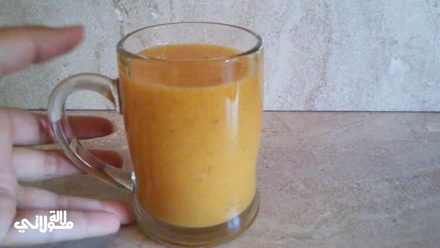 المكونات : حبات من الجزر + قطعة من القرع الاحمر + حبات من التمر + ملعقة من حب الرشاد + كمية من عصير البرتقال