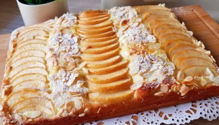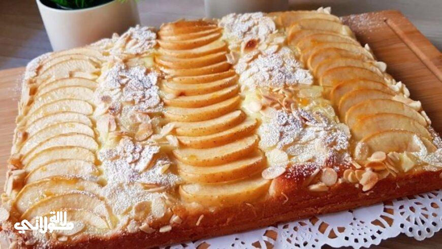 المكونات بيضة نصف كاس ماء دافئ علبة ياغورت طبيعي نصف كاس سكر نصف كاس زيت فانيلا ملعقة متوسطة خميرة الخبز 8غ خميرة الحلويات كاسان دقيق ابيض مكونات الكريمة كاس حليب ملعقة كبيرة سكر ملعقة كبيرة بودرة كريم باتسيير للتزيين شرائح التفاح لوز ايفيلي.