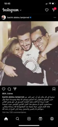 وأورد الفنان قائلا: ” حبايبنا في مكان أود أن أعبر لكم عن حزني العميق وذهولي لما أصابني وزوجتي وعروستنا غيثة وكل أفراد أسرتنا لما أقدم عليه القضاء الفرنسي في حق ولدي الغالي”.