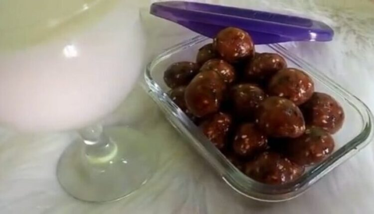 المكونات : 10 حبات من التمر + نصف كوب من الزبيب + نصف كوب من السمسم + كمية من العسل + ملعقة من الحبة السوداء + ملعقة من حب الرشاد