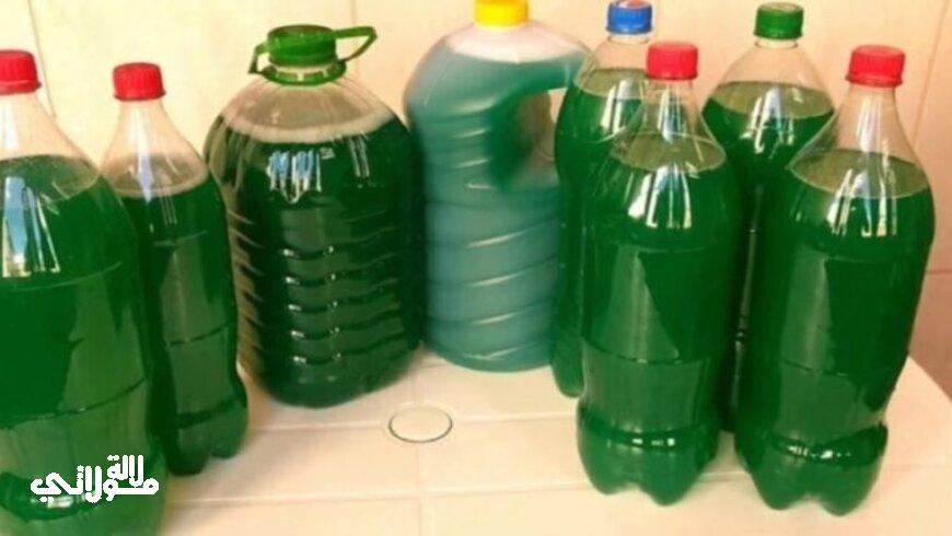 المكونات: 2 لتر ماء مغلي + 1.5 لتر ماء بارد+قشور ليمون+عصير 4 ليمونات+صابون حجرة+2 كؤوس من الصابون السائل المخصص للأواني+ملعقة بيكاربونات الصودا