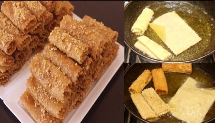 المكونات 3كؤوس دقيق 300 غ كاس الا ربع ماء + ماء زهر. 110ملل 4 م ك زنجلان 30 غ م ك نافع او شمر. 6غ نصف م ص قرفة 1غ 5 م ك زيت او ربع كاس عنبة. 40 غ عسل للتزين. زيت للقلي. لوز او كاوكاو كونكاسي.