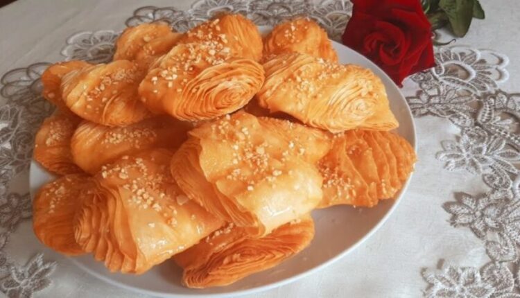 المقادير: (الكوب 250مل)+5كؤوب دقيق أبيض+كوب إلا ربع زبدة مذابة+كيس سكر فاني+ملعقة كبيرة خل+قبصة ملح+4ملاعق كبيرة ماء الزهر+ماء الصنبور لجمع العجين (كوب ونصف تقريبا)+أبيض البيض لالصاق العجين+زيت للقلي