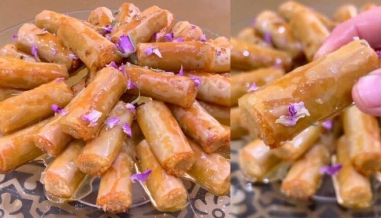 مكونات : 500غرام من لوز 200غرام من السكر ملعقة كبيرة من الزبدة 30غرام 3ملاعق من ماء الزهر نصف ملعقه صغيرة من القرفة مسكة حرة (مستكة) ورقة الفيلو زبدة عسل.