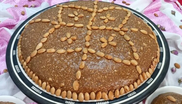 المقادير كيلو دقيق كيلو وربع جنجلان كيلو وربع لوز 2معالق قرفة معلقة حبة حلاوى معلقة نافع مسكة حرة نصف كوزة 250غرام سكر سقيل كأس زيت الزيتون.
