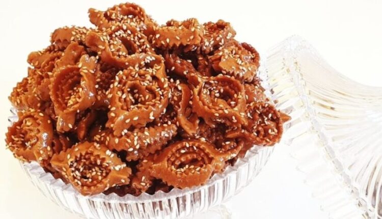 المقادير : 500غ دقيق 35غ زيت نباتية 30غ خل أبيض 45غ ماء الزهر 70غ زبدة شعيرات الزعفران بيضة كاملة 1|4ملعقة قهوة قرفة قبصة مسكة حبة قبصة ملح 100غ خليط لوز /سمسم ملعقة كبيرة نافع 3،5غ خميرة الحلويات زيت للقلي عسل+سمسم.