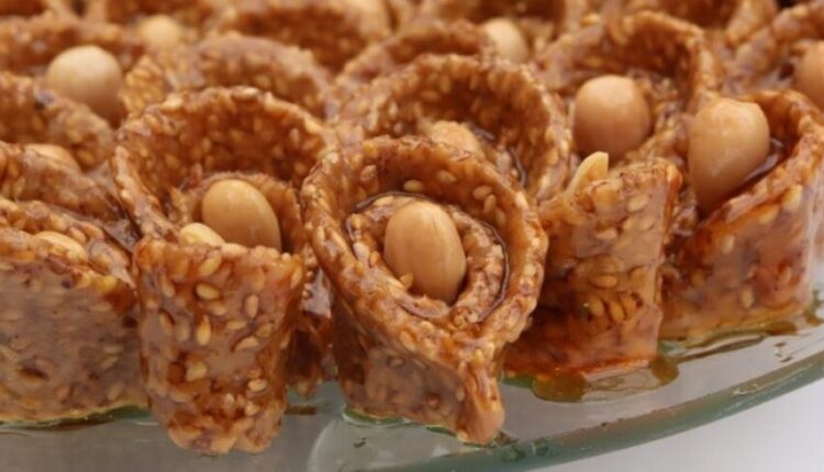 المقادير: جوج كؤوس ونصف جنجلان قياس لعنبة / 250 غرام جنجلان- جوج كؤوس ونصف دقيق قياس العنبة /250غرام دقيق- صفر بيضة – معلقة كبيرة نافع – نصف معلقة صغيرة قرفة – معلقة كبيرة زبدة – ملعقتان كبيرتان زيت – نصف ملعقة صغيرة خل – قرصة ملح – نصف كاس زهر /75 مللتر ماء زهر – نصف كأس ماء / 75 مللتر ماء-