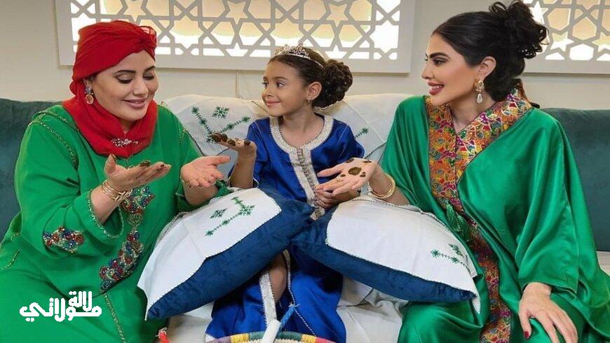 حيث ظهرت مريم حسين القاطنة بدولة الإمارات، في الصور التي شاركتها مع متابعي حسابها الشخصي على موقع التواصل الإجتماعي “إنستغرام”، وهي تضع الحناء لإبنتها، بمساعدة والدتها.