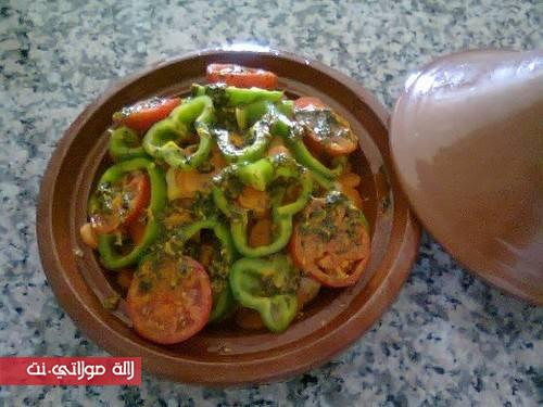 العطرية وشوية الخل وشوية الزيت نخلط الربيع مع الملح والكمون والتومة محكوكة وشوية سكنجبير والبزار وتحميرة والهريسة والخل تخلط الكل ونتبل الحوت مزيان تم ناخد البطاطة والفلفلة والخيزو قطعتهم دوائر