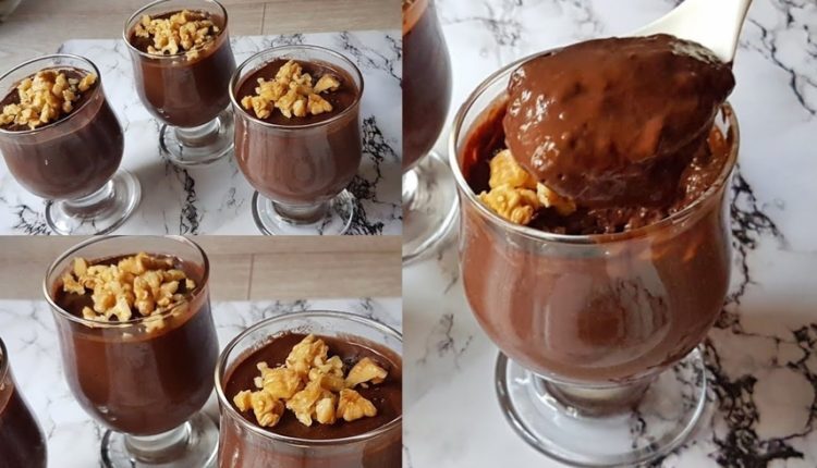المكونات نصف لتر حليب علبتين فلان شوكولا واحدة محلاة والاخرى بدون سكر 12 قطعة بيسكوي 50 غ من الشوكولاتة السوداء للتزيين الجوز.