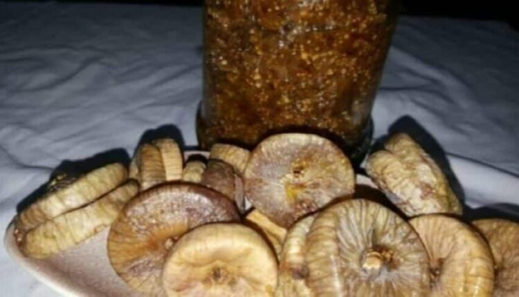 المكونات : 4 حبات من التين المجفف + كوب من زيت الزيتون + ملعقتين من السمسم + ملعقة من بذور الصوجا المطحونة