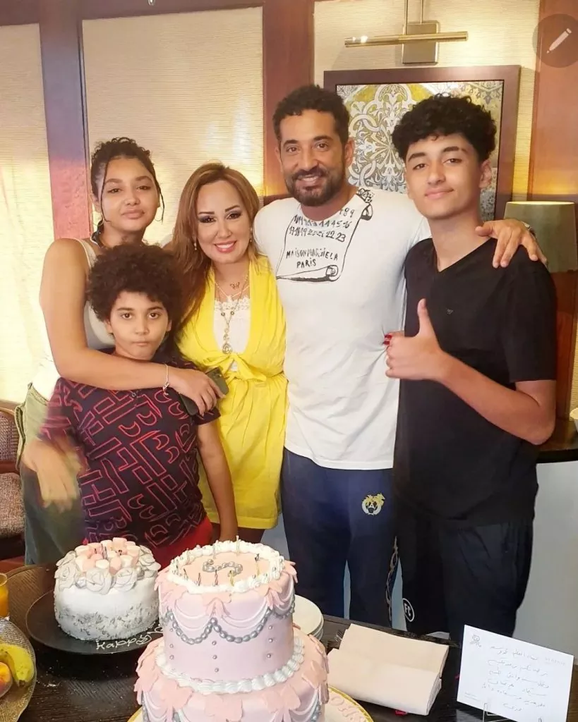 وظهر عمرو سعد في إحدى الصور متوسطا أبنائه الثلاثة وزوجته، حيث كانت العائلة مجتمعة في عيد ميلاد أحد أفرادها، إذ ظهروا جميعًا أمام قالب الحلوي، ولكنها صورة تنشر للمرة الأولى على حساب عمرو سعد الرسمي.