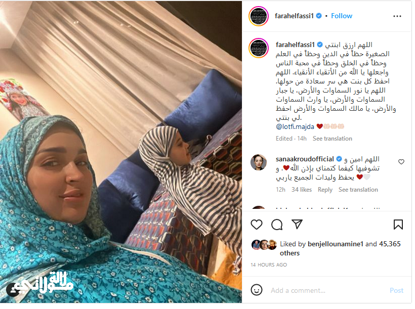 وظهرت الفنانة، فرح الفاسي وابنتها بالحجاب، في الصور التي تقاسمتها مع محبيها عبر “الإنستغرام”، والتي لقيت إعجابهم.