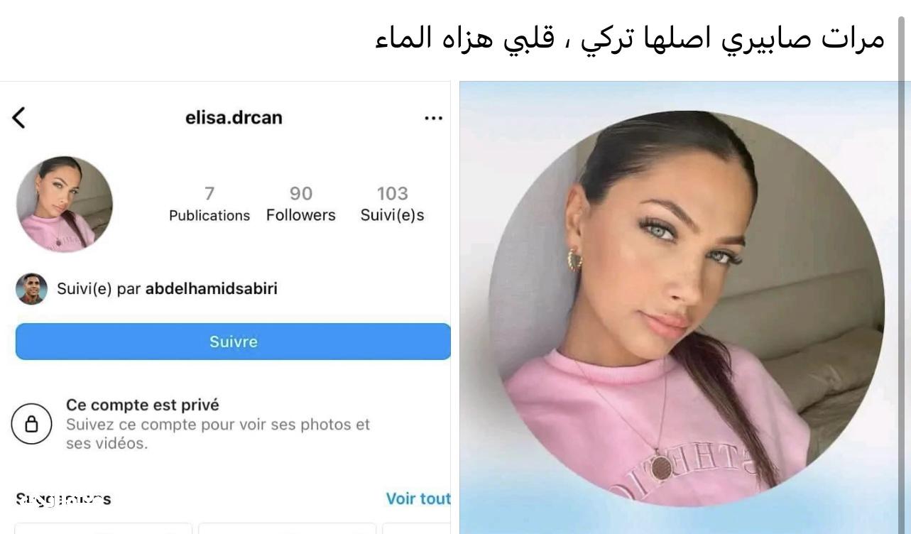وتناقل عدد من رواد “إنستغرام ” صورا لفتاة تدعى “إليسا”، مرجحين أن تكون هي زوجة لاعب أسود الأطلس الصابيري. أرفقوها بتعليقات يبدون فيها إعجابهم بها.