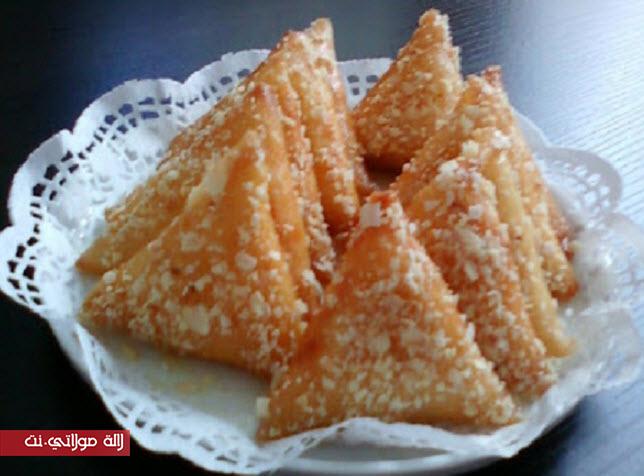 توضع كويرة اللوز على حافة المستطيل، تسطح قليلا ثم تطوى على نفسها على شكل مثلث.