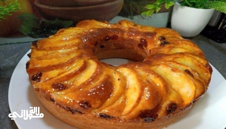2بيض كاس حليب دافئ نصف كاس زيت 2كؤس دقيق 16غرام خميرة الحلويات سكر منسم بالڤنيلا كاس سكر للتزيين 2تفاح مربى المشمش زبيب اسود سكر قرفة.