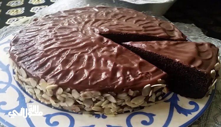 طريقة التحضير : في إناء نضع البيض، السكر و الملح و نخفق جيدا وننقص سرعة الخلاط و نخفق و نضيف مبشور الحامض، الزيت بالتدريج، الحليب بالتدريج، عصير الحامض و الخل ونضيف الكاكاو و خميرة الحلويات للدقيق و نخلط ونضيف الخليط المنخول بالتدريج مع الخلط الجيد باستعمال الخلاط ونصب الخليط في مول الفرن مدهون بالزبدة و مرشوش بالدقيق و ندخلها للفرن لكي تطهى ونخرج الكيك من الفرن و نعمل ثقوب باستعمال عود الأسنان ونسقي الكيك بالحليب و نتركه جانبا و نمر لتحضير الكريمة وفي كسرول نضع الحليب ثم نضيف الفلان ونضيف السكر، الكريم باتسيير و الكاكاو و نخلط العناصر جيدا و نضعها فوق النار الى أن تعقد ثم نزيلها من فوق النار و نضيف دانيت شوكولا و نخلطنصب الخليط فوق الكيك و ندخلها للثلاجة الى أن تتماسك الكريمة ونخرجها من الثلاجة و ننخل الكاكاو فوقها نزين بالجوز و الفيوتين و نقدم كيكة الشوكولا بألف هنا و شفا.