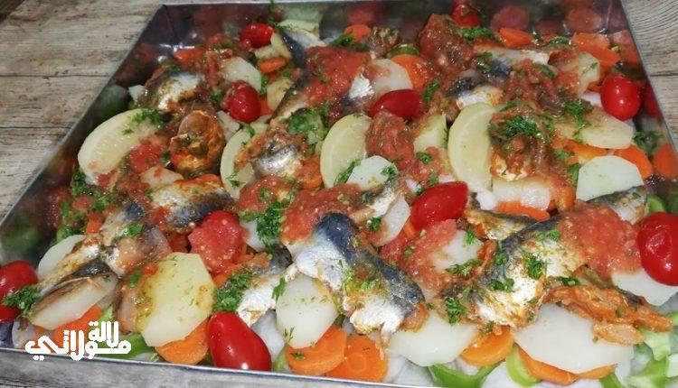المكونات : كيلو سمك السردين+ 2 جزرات +2 بطاطس +بصلة +طماطم