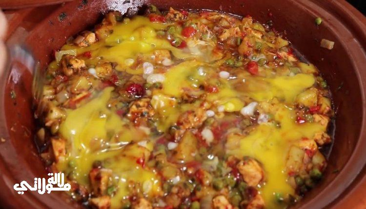 المكونات: صدر دجاج +بطاطس+ بصل+ فلفل احمر+ جلبانة+ قزبر وبقدونس+ ثوم +صلصة طماطم او حبة طماطم+ زيت زيتون+ ملح+ بابريكا او فلفل احمر+ هريسة+ كامون+بيض.