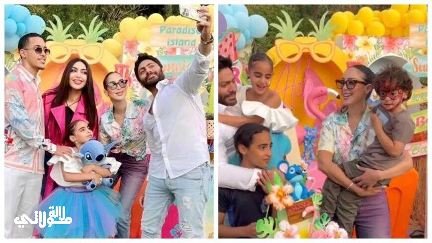 رغم الطلاق بسمة بوسيل وتامر حسني يحتفلان بعيد ميلاد ابنتهما