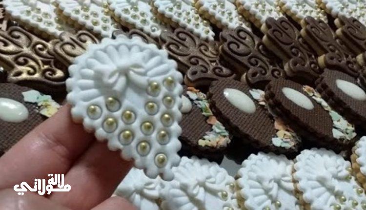 مكونات عجينة الصابلي: كيلو دقيق ابيض 250 غرام زبدة نباتية 2كيسان عنبة سكر كلاصي 2 كيسان عنبة زيت كأس كوك محمر و مطحون 2 بيضات معلقة كبيرة كليكوز معلقة كبيرة مسحوق الكاكاو المر معلقة صغيرة مسحوق الفاني قبصة الملح لكناش الابيض: 100 غرام شكلاط ابيض 2 معالق كبار نباج نكهة البيسكوي التزين : عجينة الشكلاط الأبيض و الاسود شكلاط ابيض ملونة حبيبات الشكلاط نباج كليكوز نكهة الفاني و الناطا عقيق دهبي ملمع ذهبي.