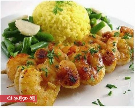 – تصفف وحدات القيمرون في الأسياخ (القضبان) ويشوى لمدة 4 أو 6 دقائق، ثم يقدم مع الأرز والسلطة.