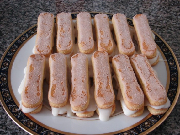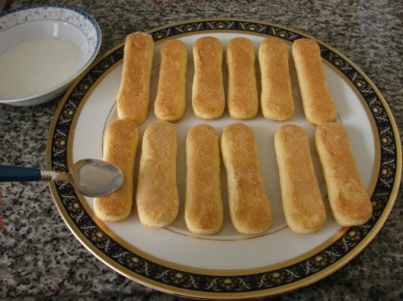 وبعد الخفق جيدا توضع على نار هادئة حتى يغلظ القوام نحضر البسكويت ونسقية بالحليب ثم نضع علية الكريمة