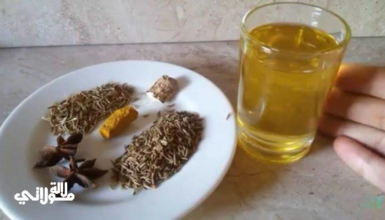 يمكنك سيدتي أن تقومي بوضع ملعقة من الكامون البلدي وملعقة من العرعار الجاف وحبتين من اليانسون النجمي وقطعة من عود الكركم وقطعة من عود القرفة، في إناء به ماء مغلي واتركي المكونات على النار مدة 10 دقائق ثم صفي المحلول وضعيه في قنينة داخل الثلاجة وتناولي منه 3 اكواب في اليوم ستشعرين بتحسن كبير.