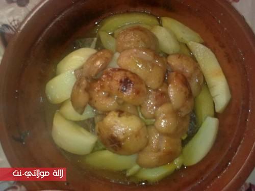 قبل 15 دقيقة على نضج اللحم،نضيف البطاطس ثم السفرجل