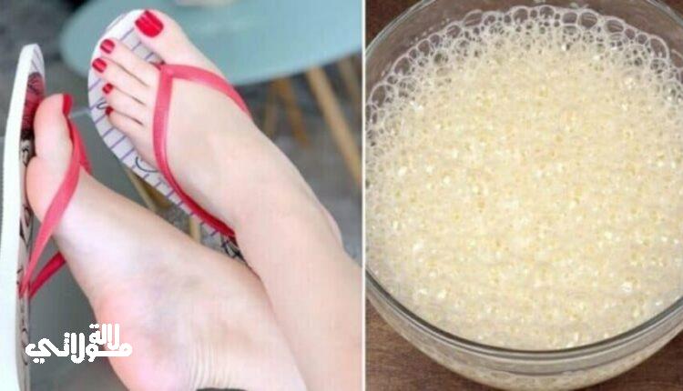 والتي يمكنك سيدتي تجربتها عن طريق خلط معلقة من الفازلين مع ملعقة من النشا وملعقة من الليمون واخلطي جيدا ثم طبقي الخليط على أقدامك والبسي جواب من البلاستيك وفوقها جواربك العادية واتركي الخلطة ليلة كاملة على أقدامك ، ثم اشطفي في الصباح سترين أنك عند إزالتها ستزول كمية كبيرة من الخلايا الميتة فضلا على النعومة والبياض الذين سترينه لأول مرة.