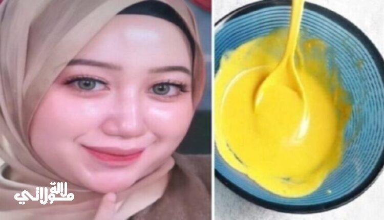 المكونات : ملعقة من دقيق الأرز الناعم + ملعقة من الكركم البلدي المطحون + ملعقة من العسل الطبيعي.