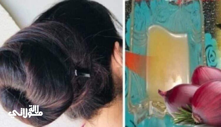 الطريقة :قومي بتنقية البصلة وابشريها ثم صفيها واستخلصي الماء ثم ضيفي له قطرات من زيت الفيتامين e واخلطي الكل جيدا وضعيه في بخاخ ثم رشيه على شعرك جيدا مع تدليك فروة الرأس جيدا ثم وزعيه على كامل شعرك من الجذور حتى الأطراف ولفي شعرك واتركيه لمدة ساعتين ثم اغسلي شعرك جيدا بالشامبو الخاص بك.