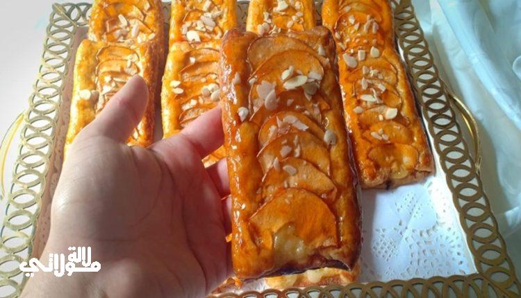 المكونات العجين : 400 غ دقيق الفورص + 100 غ دقيق الفينو + م ص ملح + م ك سكر + ماء الحشوة كريم باتسيير للتزيين : مربى + لوز.