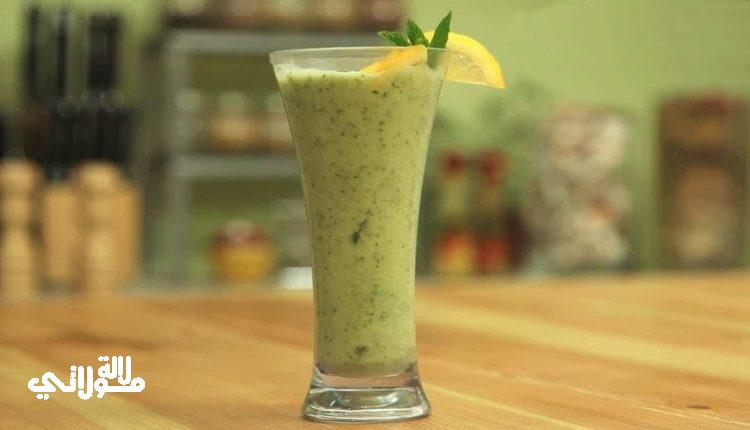 المكونات : حبتين من التفاح الأخضر + حبة من الخيار + عودين من الكرفس + نصف كوب من عصير الليمون + قطعة طرية من الزنجبيل + عصير البرتقال + ملعقة من العسل الطبيعي + ملعقة من الزبيب