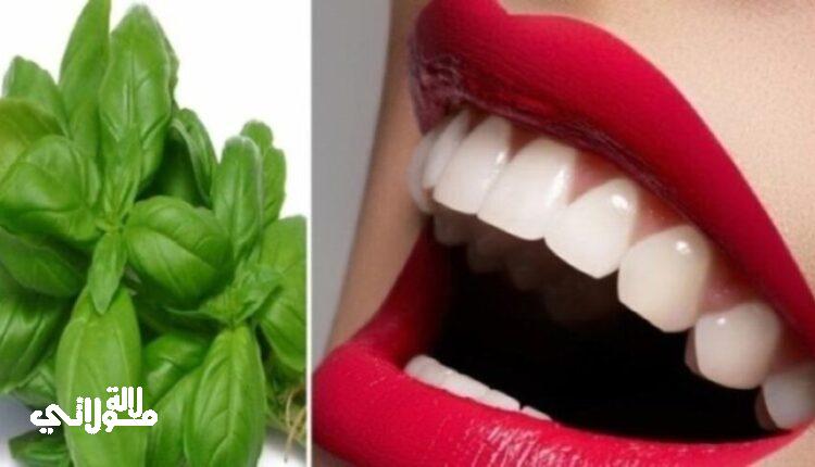 الريحان أفضل وسيلة للحفاظ صحة الأسنان وتقوية اللثة :قومي باستخدام مسحوق أوراق الريحان لتنظيف الأسنان باستخدام الفرشاة دون الحاجة على معجون الأسنان، للحفاظ على صحة أسنانك وتقوية اللثة، إذ يتميز الريحان بخواص فعالة مضادة للبكثيريا، مما يساعد على منع تراكم مادة البلاك على الأسنان ويساعد على تفتيحها.