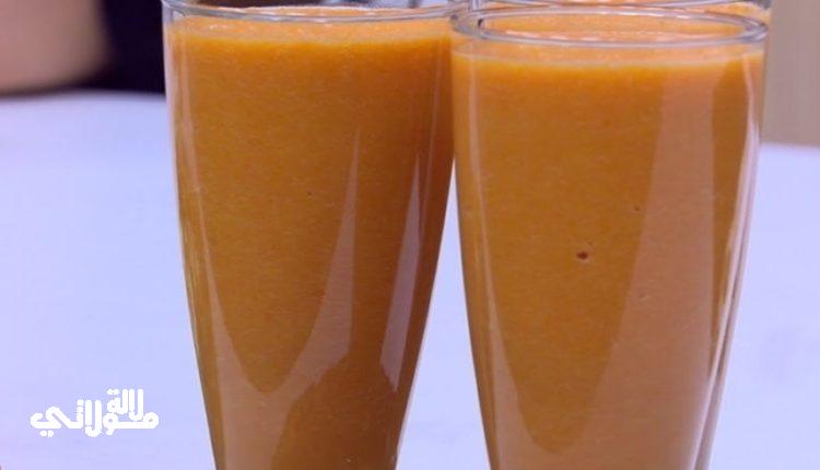 المكونات : حبة من الجزر الطازجة + حبة من الطماطم + 4 ملاعق من الياغورت الطبيعي+ ملعقتين من العسل + كمية من عصير البرتقال