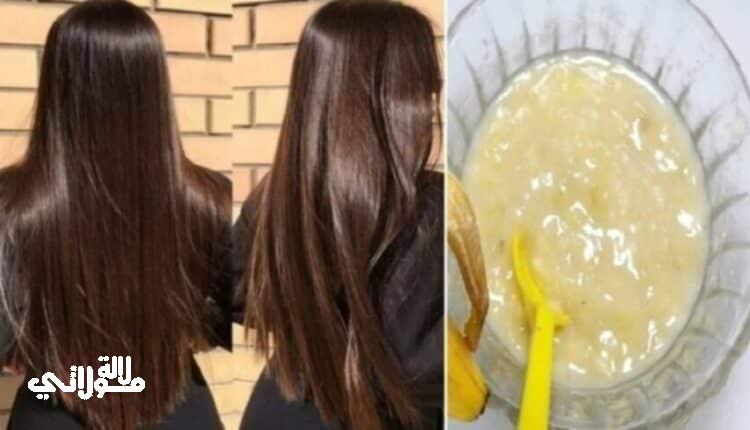 تترك قشور الموز من يوم إلى 3 أيام حتى تجف تماما، ثم تطحن قشور الموز الجافة للحصول على مسحوق ناعم، و تخلط قشور الموز بعلبة من الياغورت الطبيعي وبيضة كاملة وملعقة من المايونيز ثم ملعقتين من زيت جوز الهند وكوب من السمسم المطحون، يوضع الماسك على الشعر ويغطى الشعر بقبعة الحمام لمدة ساعتين ثم يشطف تكرار الوصفة لمرتين سيمنحك شعرا كالحرير.