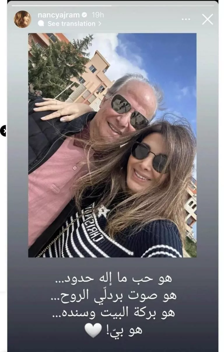 شاركت الفنانة نانسي عجرم جمهورها ومتابعيها عبر خاصية ستوري حسابها الشخصي على موقع الصور والفيديوهات «إنستغرام» بصورة جديدة جمعتها بوالدها، وذلك إحتفالا بـ عيد الأب.