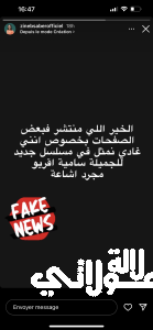 وكتبت زينب صابر في التدوينة التي شاركتها مع متابعيها قائلة:” الخبر اللي منتشر فبعض الصفحات بخصوص أنني غادي نمثل في مسلسل جديد للجميلة سامية أقريو مجرد إشاعة.”