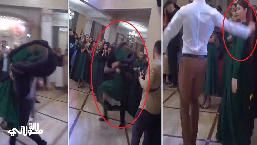 وظهر في الفيديو شاب وهو يخطف شابة، أثناء وجودهما في إحدى حفلات الزفاف، وسط ذهول الحضور.