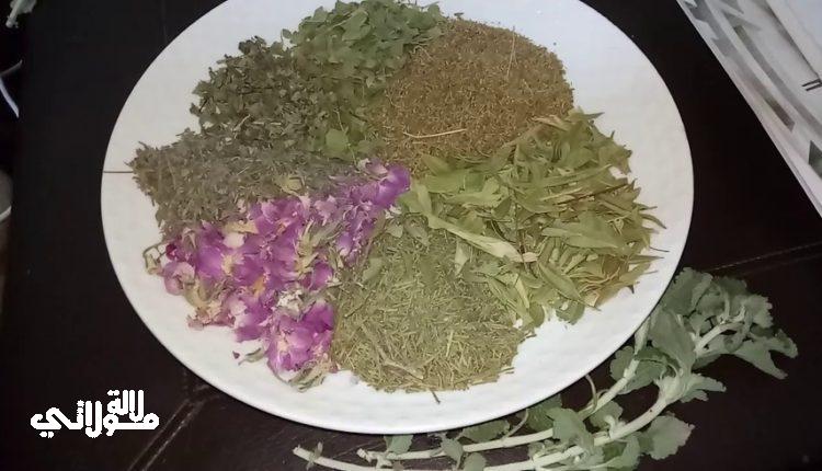 المكونات : حفنة من الشيح + حفنة من الخزامى + حفنة من الورد + حفنة من اوراق الزيتون + حفنة من اوراق الكاليبتوس + حفنة من المروتة