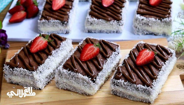 مكونات الكريمة 3 كوب حليب = 750 ميلي 3/2 كوب سكر = 170 جرام 2 ونصف ملعقة كبيرة نشا 2 ونصف ملعقة كبيرة دقيق 1 صفار بيضة فانيلا مكونات الكيك 4 بيض حجم كبير كوب الا ربع سكر = 160 جرام فانيلا 2 ملعقة كبيرة ماء = 40 ميلي 2 ملعقة كبيرة زيت = 40 ميلي 1 كوب دقيق = 150 جرام ربع كوب كاكاو = 40 جرام 1 ملعقة كبيرة بيكنج باودر للتزيين جوز هند ـ نوتيلا ـ فراولة الملاحظات الصينية مقاس 30 × 40 الخبز على 180 من 20 الى 25 دقيقة.