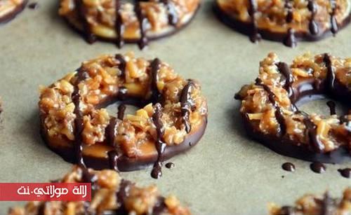 نحضر اى نوع شيكولاتة ونذوبها ونضع الدوائر من الناحية السفلية فى صوص الشيكولاتة