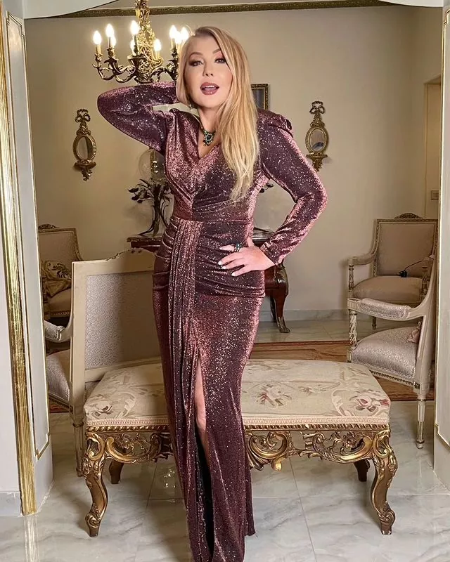 وشاركت نادية الجندي جمهورها على مواقع التواصل الاجتاعي بمجموعة صور ارتدت فيهم فستان سواريه باللون النحاسي.