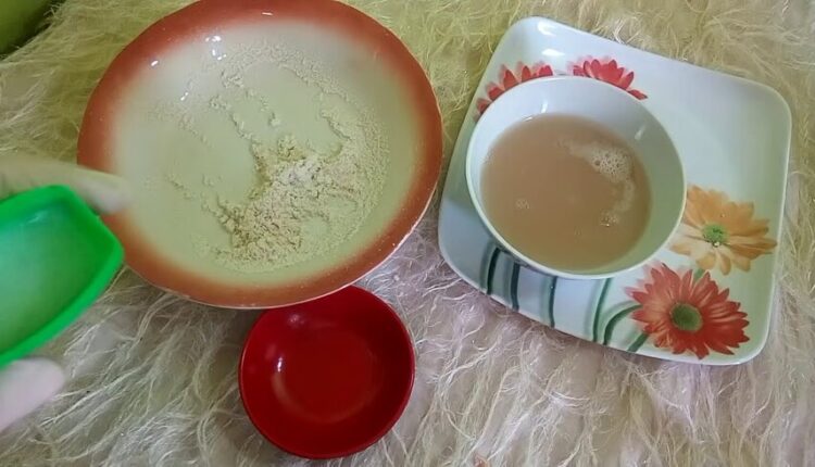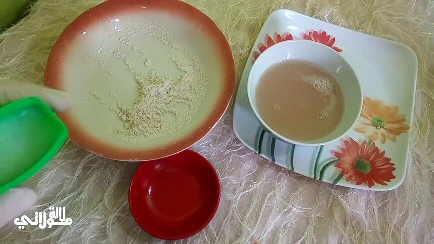 المكونات : ملعقتين كبيرتين من الكركم+ ملعقة من الخل الأبيض + ملعقة من الياغورت الطبيعي+ ملعقة من دقيق الأرز الناعم