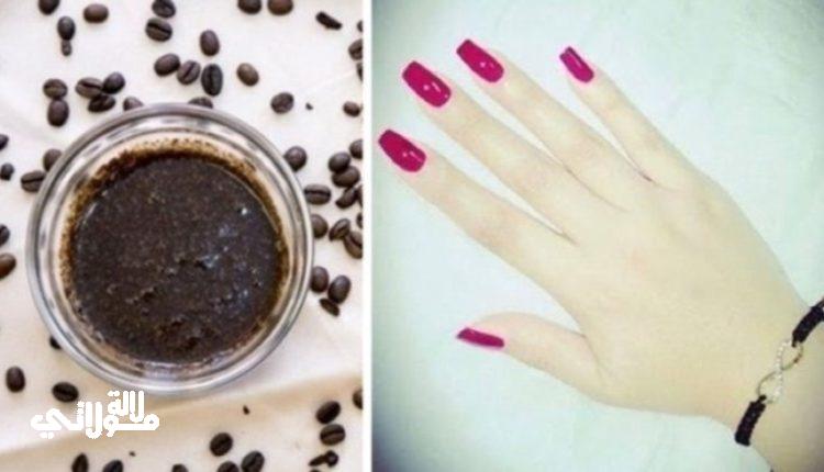 قومي سيدتي بخلطة ملعقتين من النشا وضيفي لهما ملعقة من العسل وملعقة من القهوة سريعة الذوبان وبياض بيضة واخلطي جيدا إلى أن تتجانس العناصر بعدها طبقي الوصفة على يديك واتركيها إلى أن تجف ثم أزيليها وافركي وسترين النتيجة من أول مرة .